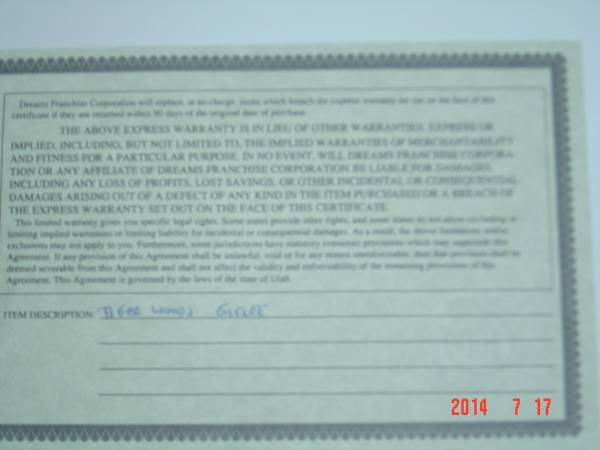 * FIELD of DREAMS GUARANTEE CERTIFICATE OF AUTHENTICITY NUMBER 250918