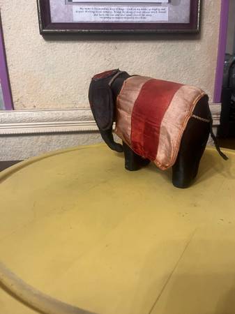 This adorable vintage stuffed fabric elephant with a circus costume is from the 1940s. he stands 7 inches tall 9 inches long and 4 inches wide. Symbolizing strength wisdom and good fortune