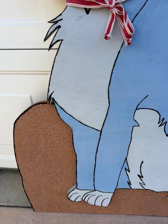 They are in good condition and are very detailed and realistic but they do have some small chips in the wood that could use a touchup of paint and have some scuffs/could use a light cleaning. Great for a party or as props for a play, movie, music video, social media content, Etc. They could even be repainted to better match your furry feline friends. They would be great to be incorporated into an art project. They would look great hung on your wall as decorations. They could be turned into shelves, plant stands, wall sconces, Etc. The opportunities are endless. Look at the measuring tape for scale and pictures for condition. Great gift.