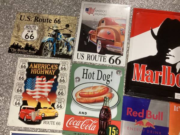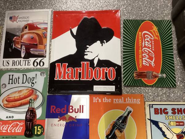 For Sale 20 Tin Signs Owned For Many Years In Very Good Used Condition Some Are Still New All Different Types Look Closely Ask Any Questions OBO Sign Tin Sign collectible man cave Art Signs