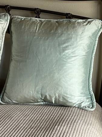 Beautiful Duponi silk euro size decorative throw pillows. I had these made for my king size bed - as you can see they fit nicely across the width of the bed. Pillows measure 22" x 22" which includes...