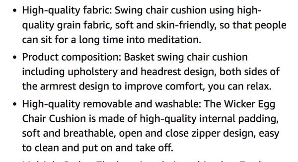 High-quality removable and washable: The Wicker Egg Chair Cushion is made of high-quality internal padding, soft and breathable, open and close zipper design, easy to clean and put on and take off. show contact info